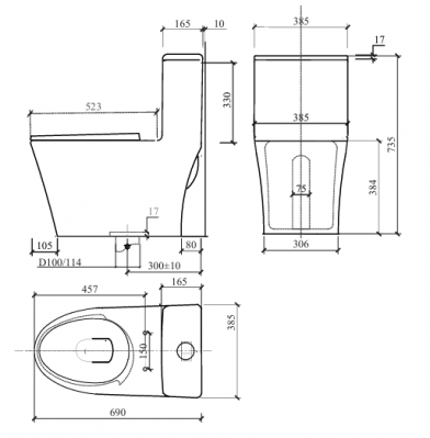 - Bệt liền khối tiết kiệm nước 3/6L , 2 nút nhấn tròn , nắp rơi êm - Vành kín , kiểu xả siphong-Jet 2 đường nước vành - Đường thoát rộng chống tắc nghẽn. - Kiểu dáng hiện đại, chân trơn rộng , chống bám bẩn.