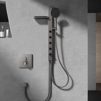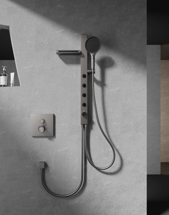 - Thân đồng thau (>59% Cu) mạ - Van trộn nước ổn định nhiệt bằng gốm kỹ thuật cao, - Tay cầm, núm vặn, hợp kim kẽm mạ điện - Bát sen tay ABS mạ, thanh trượt nhôm + ABS Dây sen PVC 150cm, vòi phun đồng.