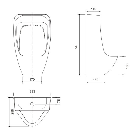 - Tiểu treo nam (loại trung) - Không có ống si phông. - Kiểu dáng mang phong cách mạnh mẽ, hiện đại. - Sản phẩm chống bám bẩn